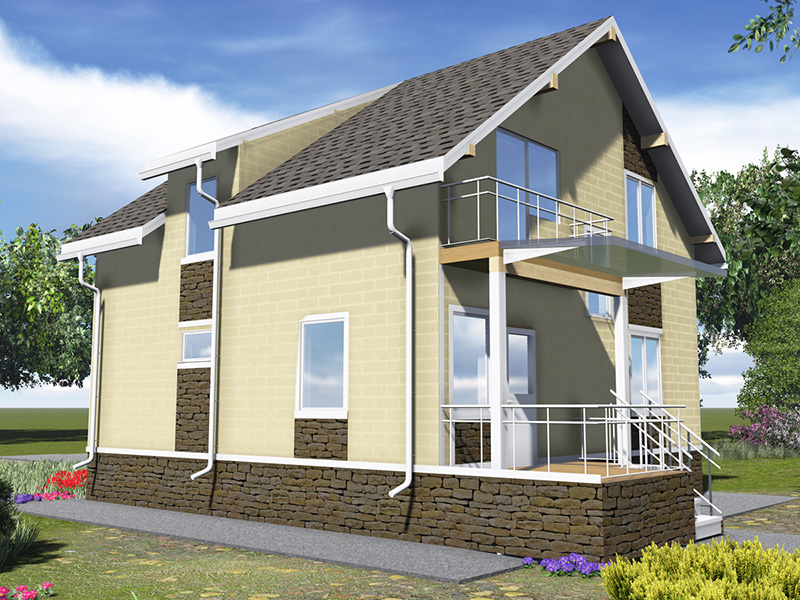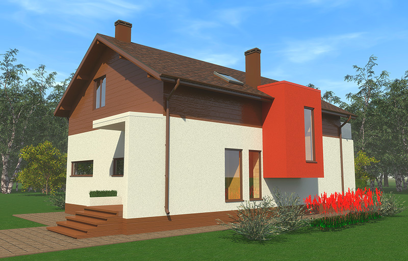 Большой уютный двухэтажный дом с гаражом и сауной. Проект прекрасно подойдет для загородного жилья для большой семьи.