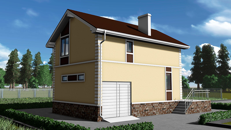 Наружная отделка — штукатурка, облицовочная плитка.