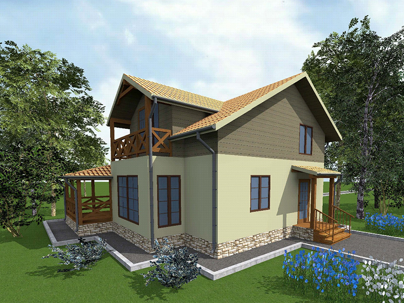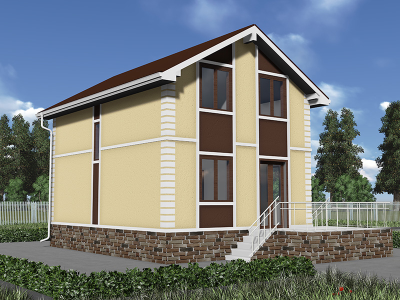 Простой в строительстве дом с двускатной крышей, подойдет, также, для узкого участка.